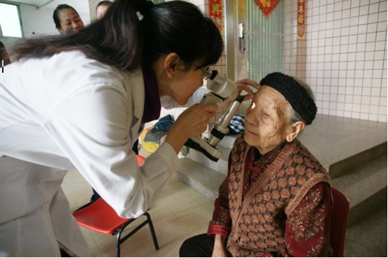 黃婉榮博士下鄉(xiāng)為百歲老人眼檢查