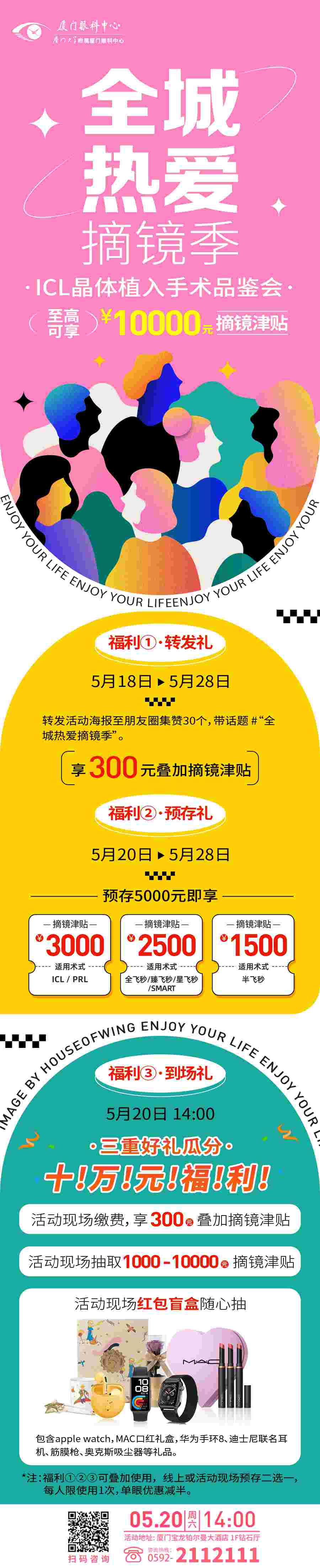5月20日下午,到場參與活動,即享300元摘鏡津貼(需現(xiàn)場預存后疊加使用。