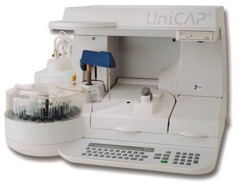 UniCAP系統(tǒng)建立于新型固體——ImmunoCAP上。ImmunoCAP是裝在小膠囊中的親水性載體聚合物,由一種經(jīng)CNBr活化的纖維素衍生物合成,有變應(yīng)原結(jié)合的能力。其優(yōu)良的反應(yīng)條件和較短的擴散距離,使過敏原的檢出率較以往方法提高15%。來自美國、歐洲和亞太地區(qū)的臨床結(jié)果說明,與獨立的皮試結(jié)果相比,UniCAP系統(tǒng)得出的結(jié)果與變態(tài)反應(yīng)專家的臨床診斷有更好的相關(guān)性。