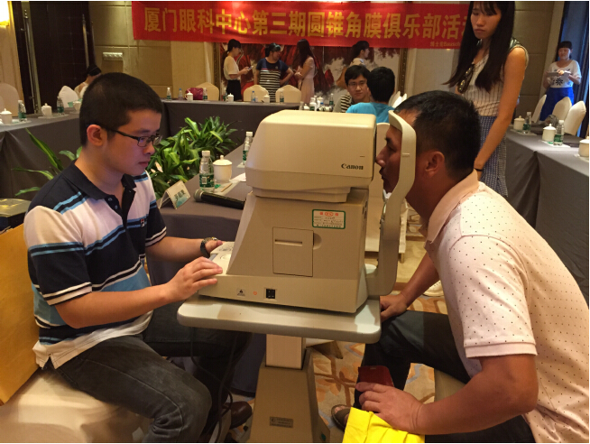 當(dāng)天下午,除開展交流會外,廈門眼科中心還同期舉辦第三期圓錐角膜俱樂部活動,同時還聯(lián)合參會的知名眼科專家為市民開設(shè)服務(wù)專場。現(xiàn)場為市民進(jìn)行答疑和會診,還提供裂隙燈、驗光等眼部篩查服務(wù),為市民朋友提供了難得的與專家面對面交流的機會。到場的每位圓友持有裂隙燈,眼壓,驗光,裂隙燈照相,前節(jié)OCT,瞼板腺照相,淚河高度,淚膜破裂時間等相關(guān)檢查免費券,圓友可在門診時間到廈門眼科中心眼表與角膜病門診享受免費檢查。