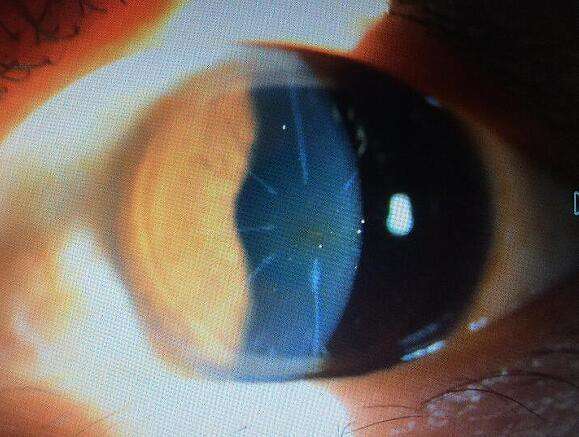 RK手術后患者眼角膜可見8條白色的放射狀切痕