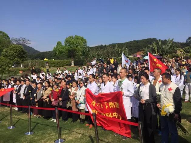 4月1日上午,廈門市紅十字會(huì)聯(lián)合廈門大學(xué)附屬?gòu)B門眼科中心在海滄文圃山陵園組織的2017年廈門市遺體與器官(組織)捐獻(xiàn)者緬懷紀(jì)念活動(dòng)順利舉行。捐獻(xiàn)者家屬、捐獻(xiàn)志愿者代表,廈門市紅十字會(huì)黨組書記、常務(wù)副會(huì)長(zhǎng)蘇蘇,廈門市紅十字會(huì)副會(huì)長(zhǎng)兼秘書長(zhǎng)俞娟,廈門市衛(wèi)計(jì)委醫(yī)政醫(yī)管處處長(zhǎng)陳糧,廈門大學(xué)附屬?gòu)B門眼科中心黨委書記陳逸恬,以及廈門海滄文圃山陵園開發(fā)有限公司、廈門大學(xué)醫(yī)學(xué)院、廈門醫(yī)學(xué)院、廈門大學(xué)附屬?gòu)B門眼科中心以及各區(qū)紅十字會(huì)代表共300余人參加了活動(dòng)。