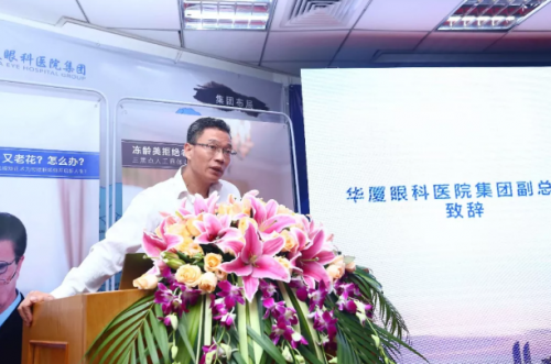 華廈眼科醫(yī)院集團副總裁、廈門眼科中心執(zhí)行院長李曉峰為會議致辭