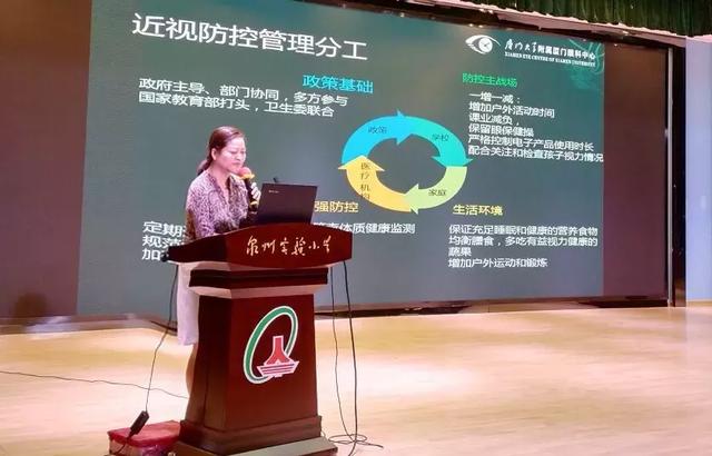 泉州市教育局陳軍宣副局長出席活動并講話,她指出目前兒童青少年不斷惡化的近視問題已經(jīng)成為全社會共同關(guān)注的社會話題。教育部等8部門印發(fā)了《綜合防控兒童青少年近視實施方案》(以下簡稱《實施方案》)“防控兒童青少年近視需要政府、學(xué)校、醫(yī)療衛(wèi)生機構(gòu)、家庭、學(xué)生等各方面共同努力,需要全社會行動起來,共同呵護(hù)好孩子的眼睛。”