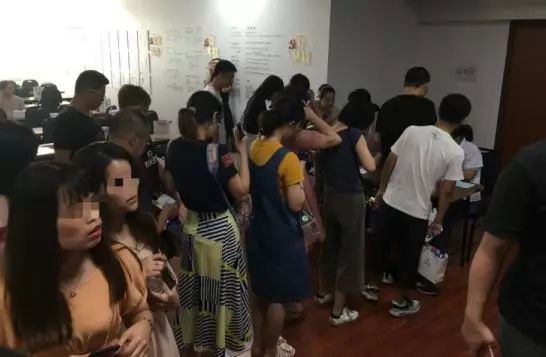 眾人在四樓排隊等候檢查
