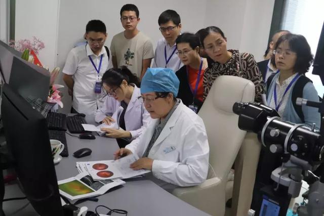 在廈門眼科中心五緣院區(qū)學(xué)員們觀摩了與眼科學(xué)發(fā)展息息相關(guān)的各類前沿的光學(xué)設(shè)備,包括德國OCT3光學(xué)相關(guān)斷層掃描儀、ZEISS眼底相干光層析血管成像儀OCTA、 ZEISS VISULAS:YAG眼科激光治療儀、英國歐寶全景200廣角激光眼底照相機(jī)等各類前沿的特檢設(shè)備。