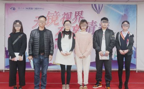▲屈光中心科執(zhí)行主任揭黎明與獲獎(jiǎng)?wù)吆嫌?br />