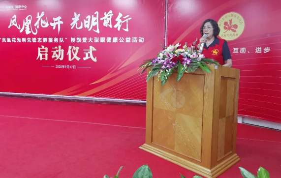 廈門(mén)市衛(wèi)生健康委員會(huì)機(jī)關(guān)黨委專職副書(shū)記、直屬黨委副書(shū)記王萍為廈門(mén)眼科中心“鳳凰花光明先鋒志愿服務(wù)隊(duì)”授旗,并宣布廈門(mén)眼科中心鳳凰花光明先鋒志愿服務(wù)隊(duì)正式成立。