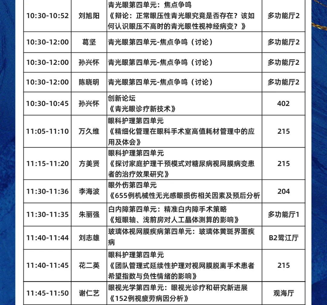數(shù)十位廈門眼科中心專家受邀大會發(fā)言,涵蓋專題發(fā)言、論文發(fā)言、討論點評等。他們將圍繞眼科臨床診療新技術(shù)、新的防治措施以及科研、教學(xué)等方面的新進展暢所欲言,多角度、多學(xué)科、多元化為眼科同道獻上一場學(xué)術(shù)盛宴。