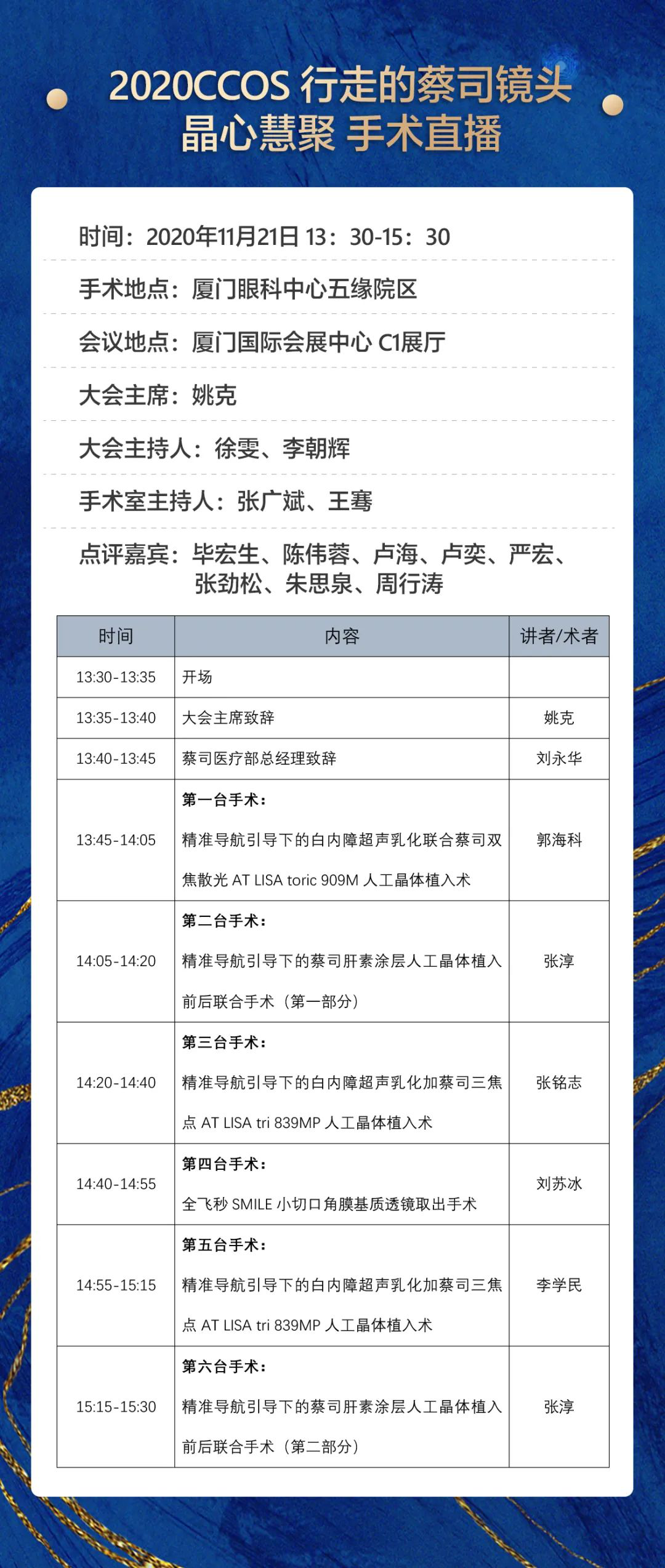 這個學(xué)術(shù)會議有點潮!為給廣大眼科臨床工作者打造一個開拓視野、提高技能的實用型的交流平臺,本屆年會還精心準備了手術(shù)直播,涉及白內(nèi)障、屈光、眼底、青光眼等亞專科,而四場手術(shù)地點就在廈門眼科中心五緣院區(qū)。