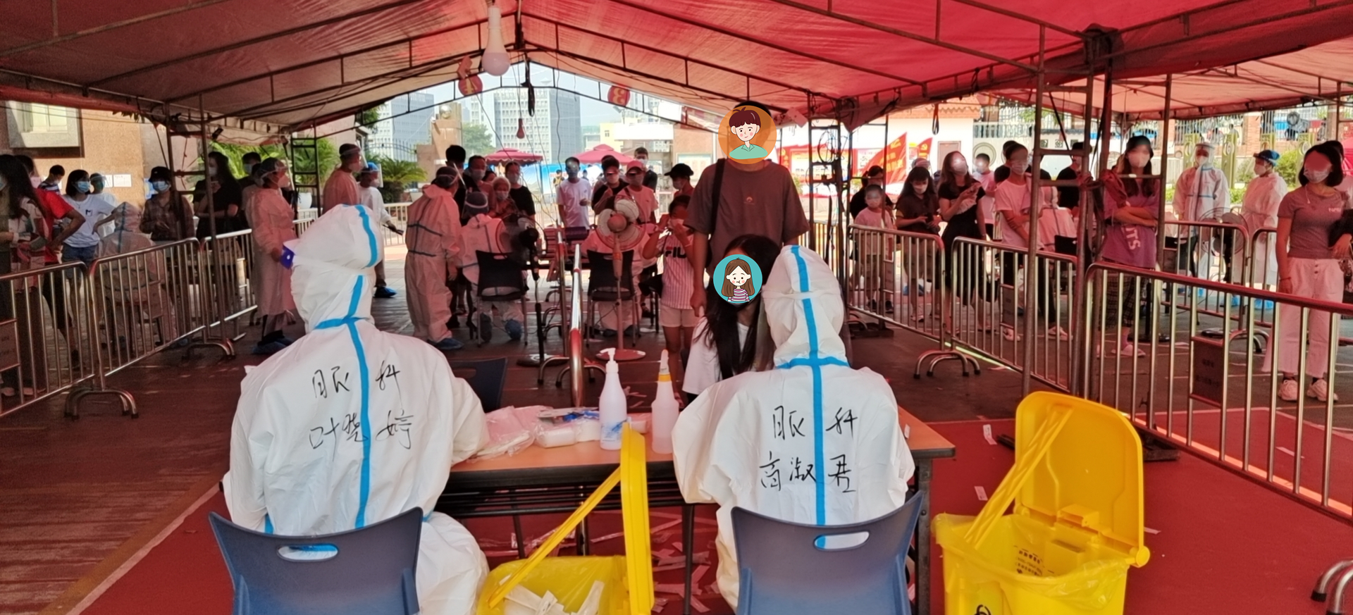 在采樣點,醫(yī)護(hù)人員穿戴著又厚又熱的防護(hù)用品,正在有條不紊地進(jìn)行著緊張的采樣工作。“沖鋒在前,吃苦在前。”在高溫的炙烤下,在緊裹的防護(hù)服中,他們沒有絲毫退卻,任汗水濕透衣襟,任雙手雙腳泡得發(fā)白,耐心細(xì)致地為每一位市民做好采集工作。他們用意志錘煉初心,用行動書寫決心,全力以赴堅決守護(hù)家園,為早日打贏疫情防控殲滅戰(zhàn)作出應(yīng)有的貢獻(xiàn)!