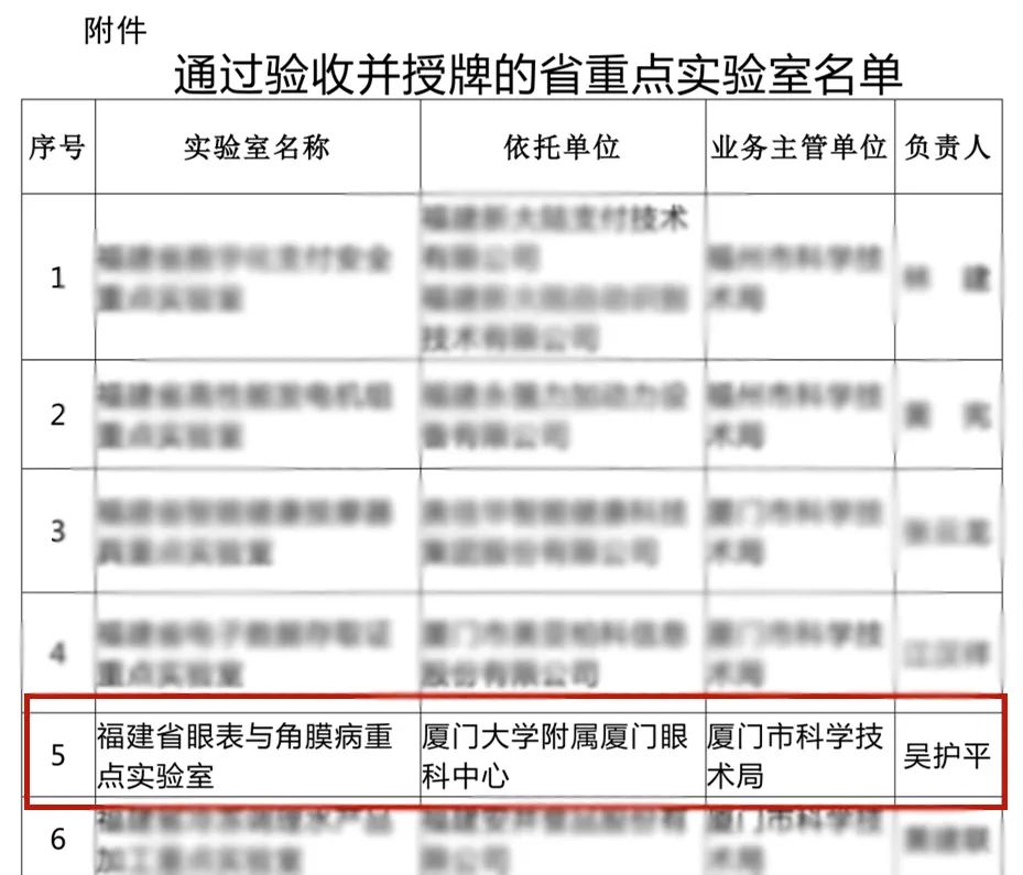 【文章導(dǎo)讀】日前,福建省科學(xué)技術(shù)廳對(duì)18家省重點(diǎn)實(shí)驗(yàn)室(企業(yè)類)開展了驗(yàn)收工作,經(jīng)過層層嚴(yán)格評(píng)選,充分評(píng)估和集體調(diào)研后,我院建設(shè)的眼表與角膜病重點(diǎn)實(shí)驗(yàn)室成功通過驗(yàn)收并授牌!實(shí)驗(yàn)