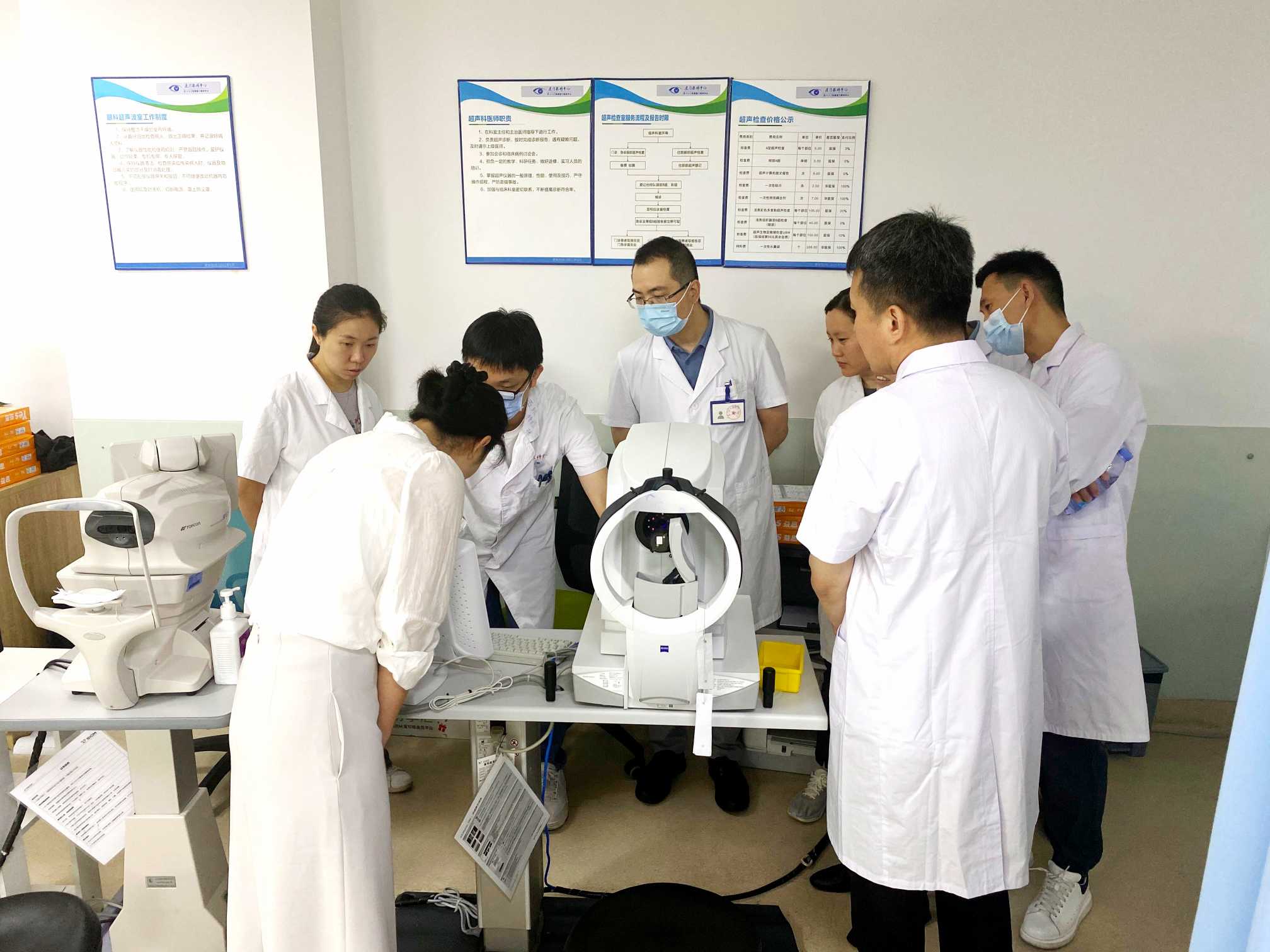 鞏固理論基礎之余,廈門眼科中心還組織參培醫(yī)師們到 門診觀摩 ,實地了解和學習ICL術(shù)前檢查和術(shù)后觀察處理流程,由史小玲主任為大家釋疑。