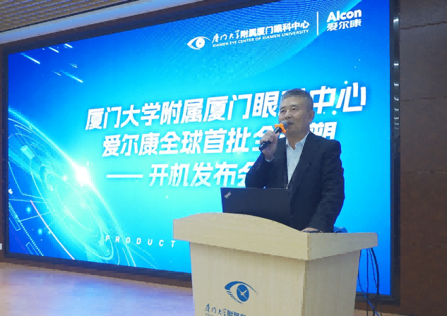 ▲華廈眼科醫(yī)院集團(tuán)副總院長(zhǎng)、廈門大學(xué)附屬廈門眼科中心業(yè)務(wù)院長(zhǎng)王騫教授代表致辭