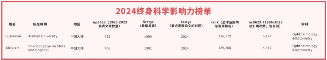 廈門眼科中心閃耀“【文章導(dǎo)讀】近日,美國斯坦福大學(xué)發(fā)布了第七版《全球前2%頂尖科學(xué)家榜單2024》。國際眼科科學(xué)院院士、廈門眼科中心總院長黎曉新教授、廈門眼科中心院士工作站導(dǎo)師中國工程院院士謝立信教授