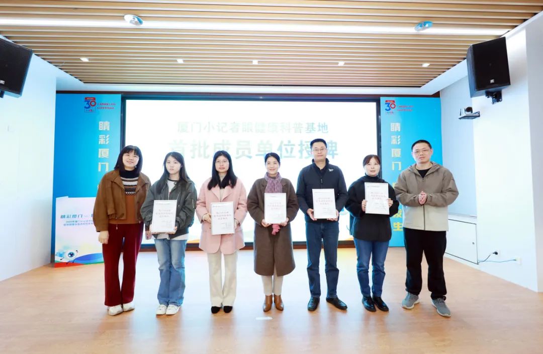 廈門市龍湫亭實驗學(xué)校、廈門市金林灣實驗學(xué)校、廈門雙十中學(xué)湖里分校、廈門市蔡塘學(xué)校和廈門金安教育集團金安校區(qū)成為廈門小記者眼健康科普基地首批成員單位,他們希望讓小記者化身眼健康科普“小使者”,通過研學(xué)實踐等活動,將愛眼護眼知識傳遞給更多同齡人,推動近視防控關(guān)口前移,形成“家庭-學(xué)校-醫(yī)院-媒體”協(xié)同聯(lián)動的眼健康宣傳網(wǎng)絡(luò)。