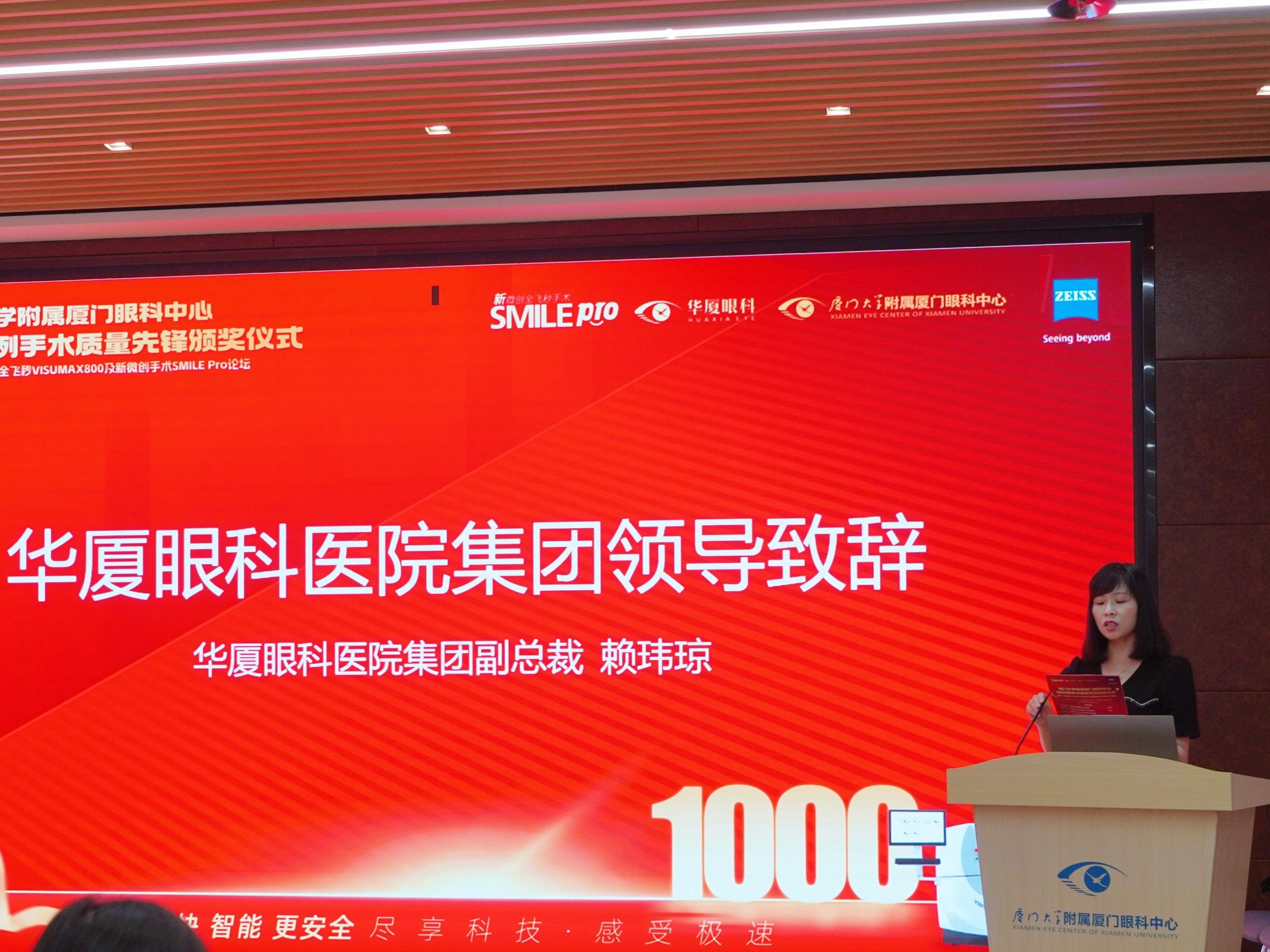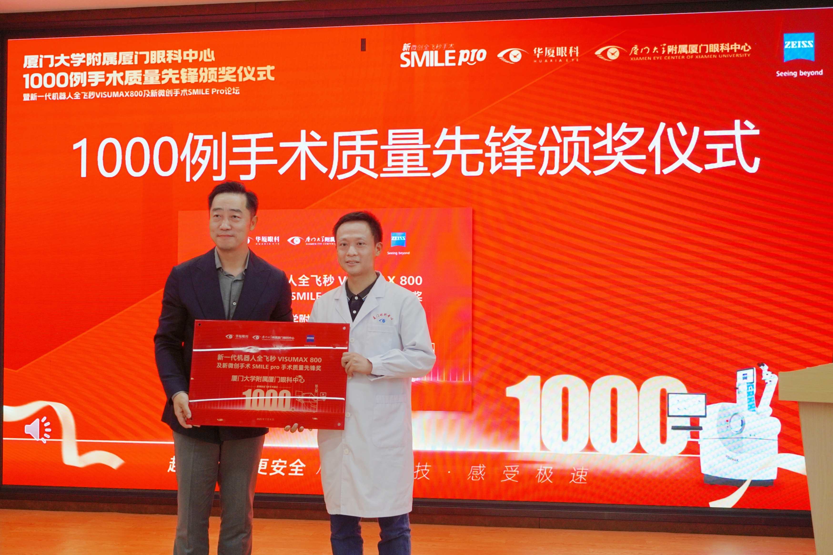 會議核心環(huán)節(jié),蔡司總部授予廈門眼科中心“SMILE Pro 1000例手術(shù)質(zhì)量先鋒獎”,這一殊榮是對廈門眼科中心在全飛秒SMILE Pro手術(shù)領(lǐng)域卓越成就的高度認可。