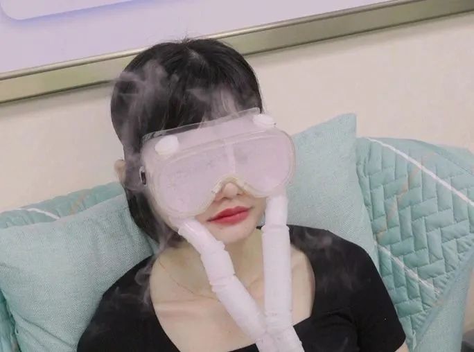 佩戴專用眼罩,通過儀器將藥物霧化成細小分子,恒溫輸出到眼罩內(nèi),在眼罩內(nèi)形成封閉的空間。