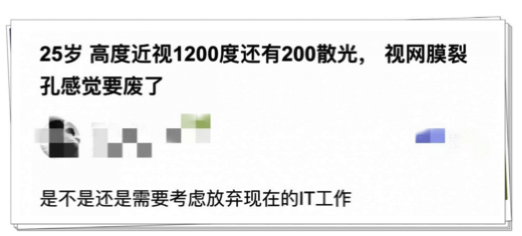 這里截圖幾位高度近視者的遭遇,希望青少年引以為戒,也提醒同為高度近視的朋友一定注意用眼。(答應(yīng)我,為了自己的眼睛也要看到后面)