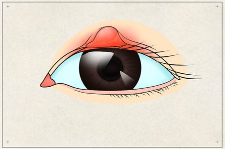 2、眼瞼皮下可觸及一至數(shù)個(gè)大小不等的圓形腫塊,小至米粒、綠豆大至黃豆、櫻桃,表面光滑不與皮膚粘連,邊緣清楚,無觸痛。